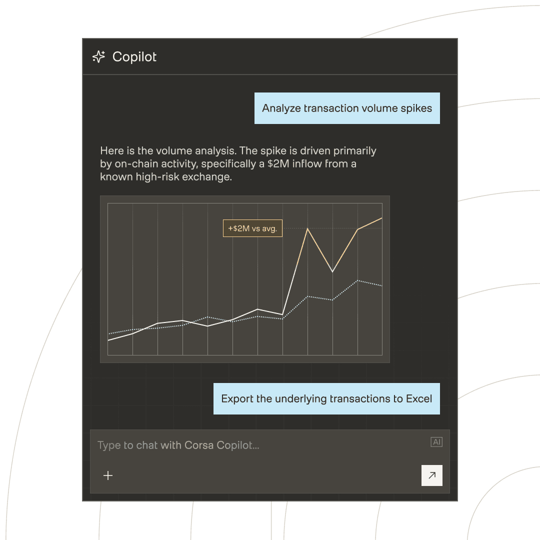 Corsa’s AI scans the full customer history and behavior to highlight key risks, anomalies, and changes - helping teams get up to speed on any customer in moments.