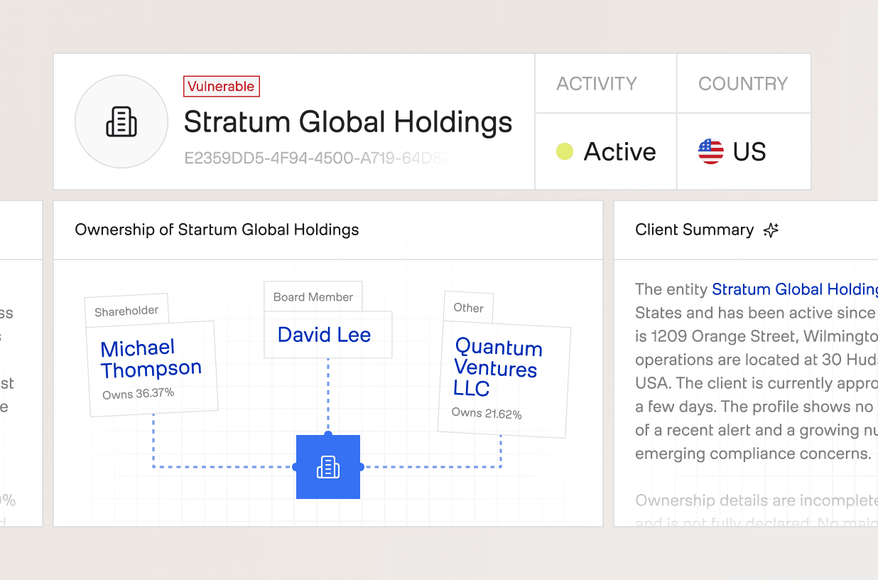 Stop digging for data. Access identity, documents, and risk history in a single, actionable profile.