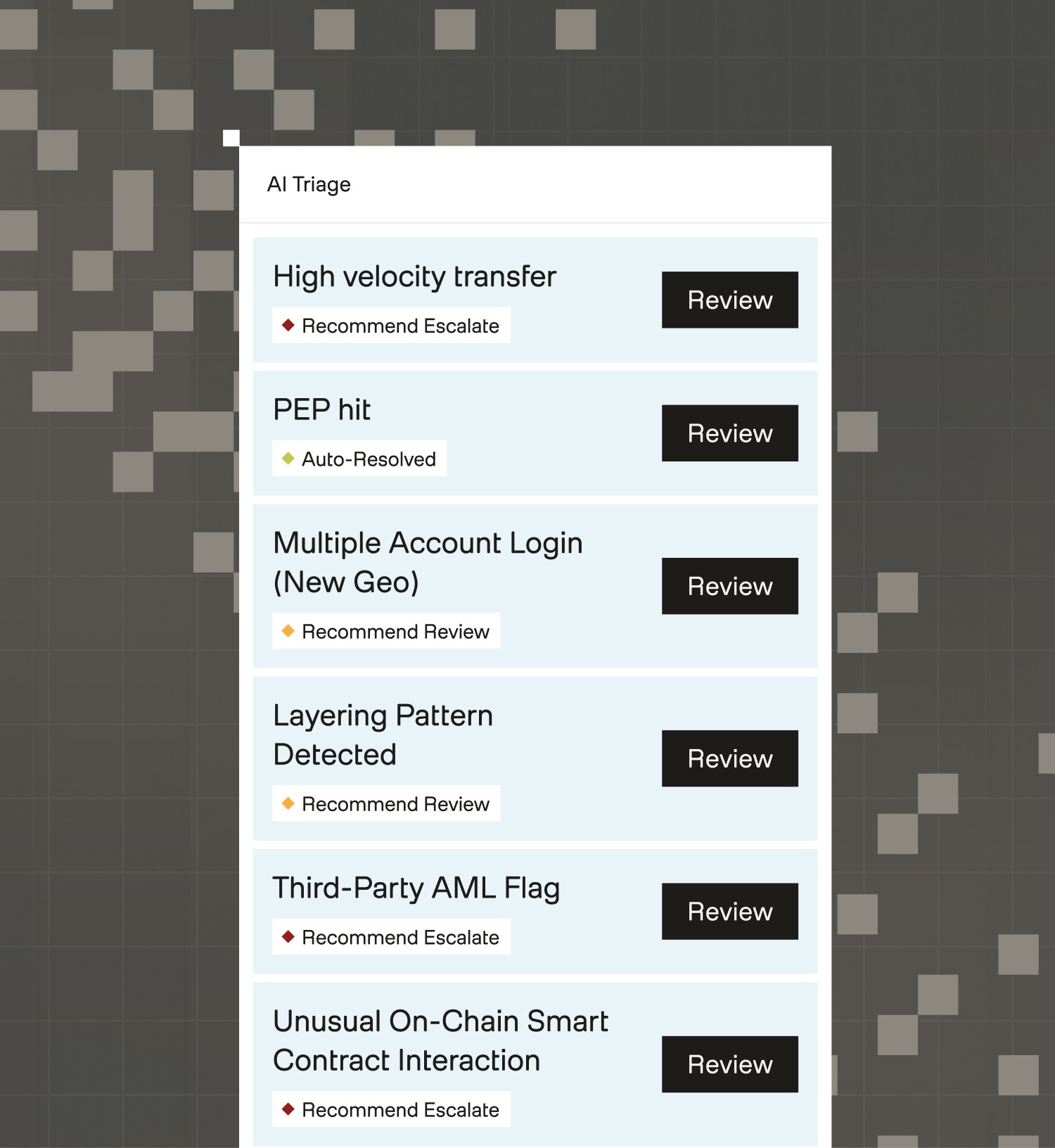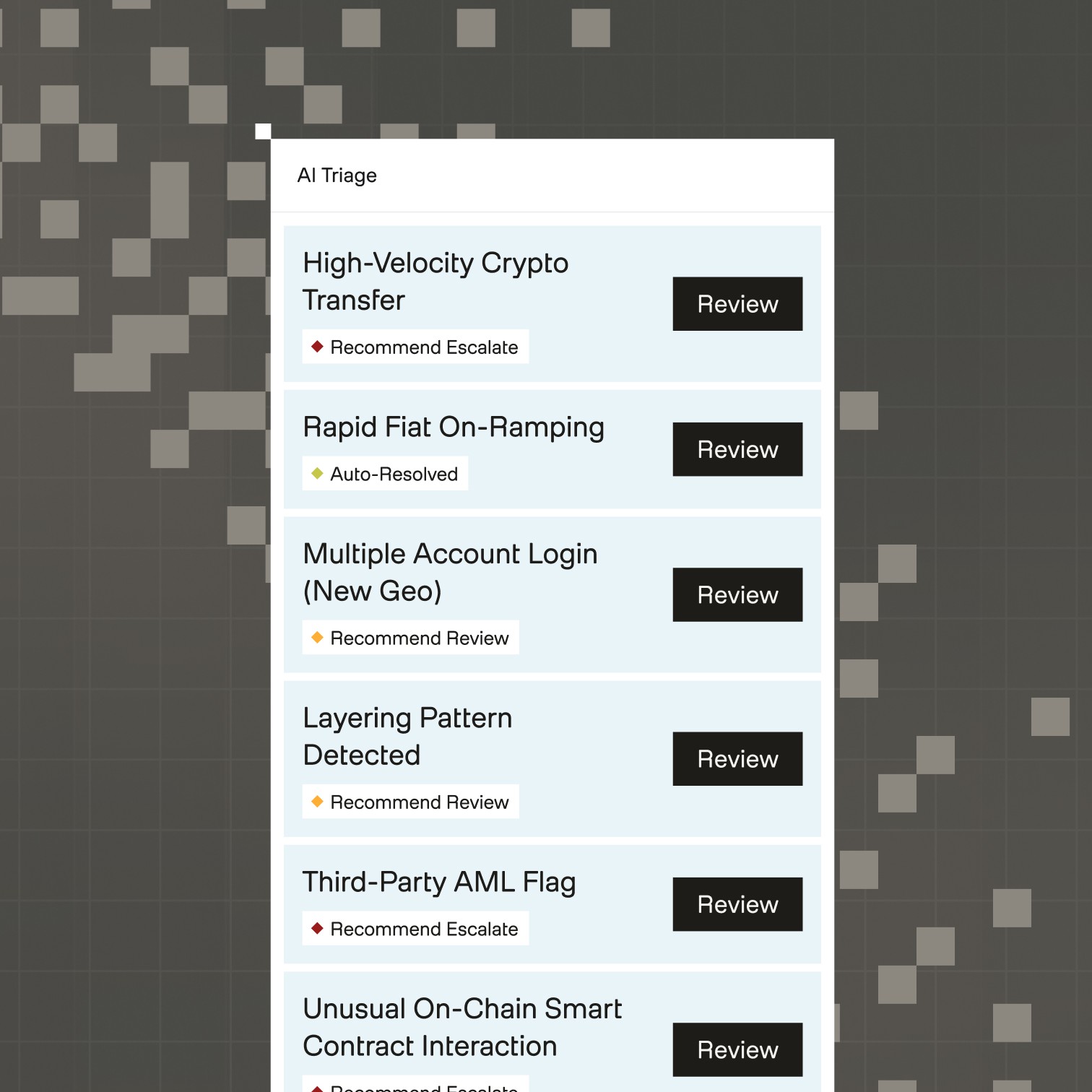 Automate workflows and standardize investigations to reduce manual work and increase investigative capacity. Handle higher alert volumes and growing regulatory demands without operational strain.