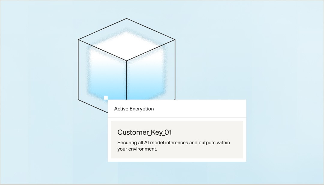 Encryption key management extends to AI agent processing, ensuring model inferences and outputs remain internal and governed by your organization’s data control policies.